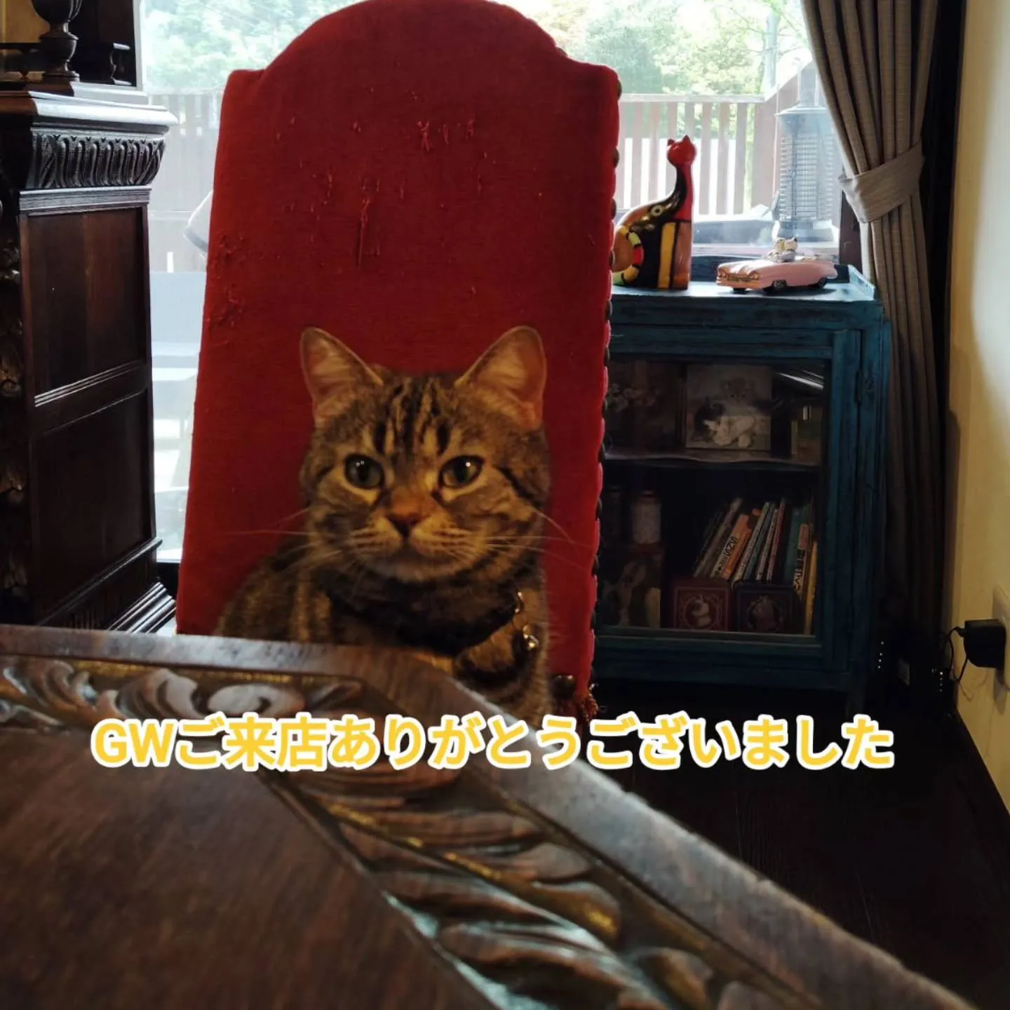 昨日は雨で静かな1日でした。 昨日は雨で静かな1日でした。GW後半は天気良さそうです。皆様のご来店心よりお待ちしておりますm(__)m#南丹市#猫カフェ#美山カフェ#美山ランチ#南丹市カフェ#猫#ボルゾイ#古民家カフェ#ドライブ#高雄#…